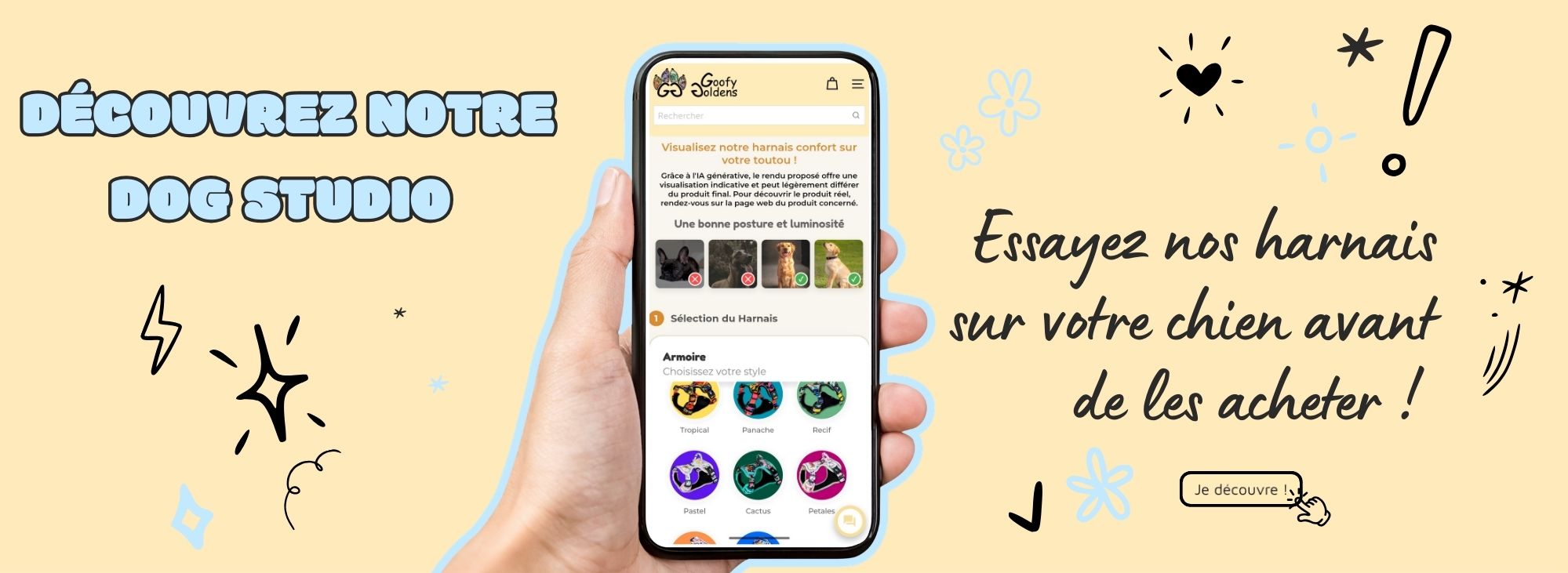 Oui ! Grâce à notre configurateur Dog Studio, vous pouvez visualiser nos produits sur votre chien. Cet outil vous aide à choisir visualiser la bonne couleur et le modèle idéal avant d’acheter.