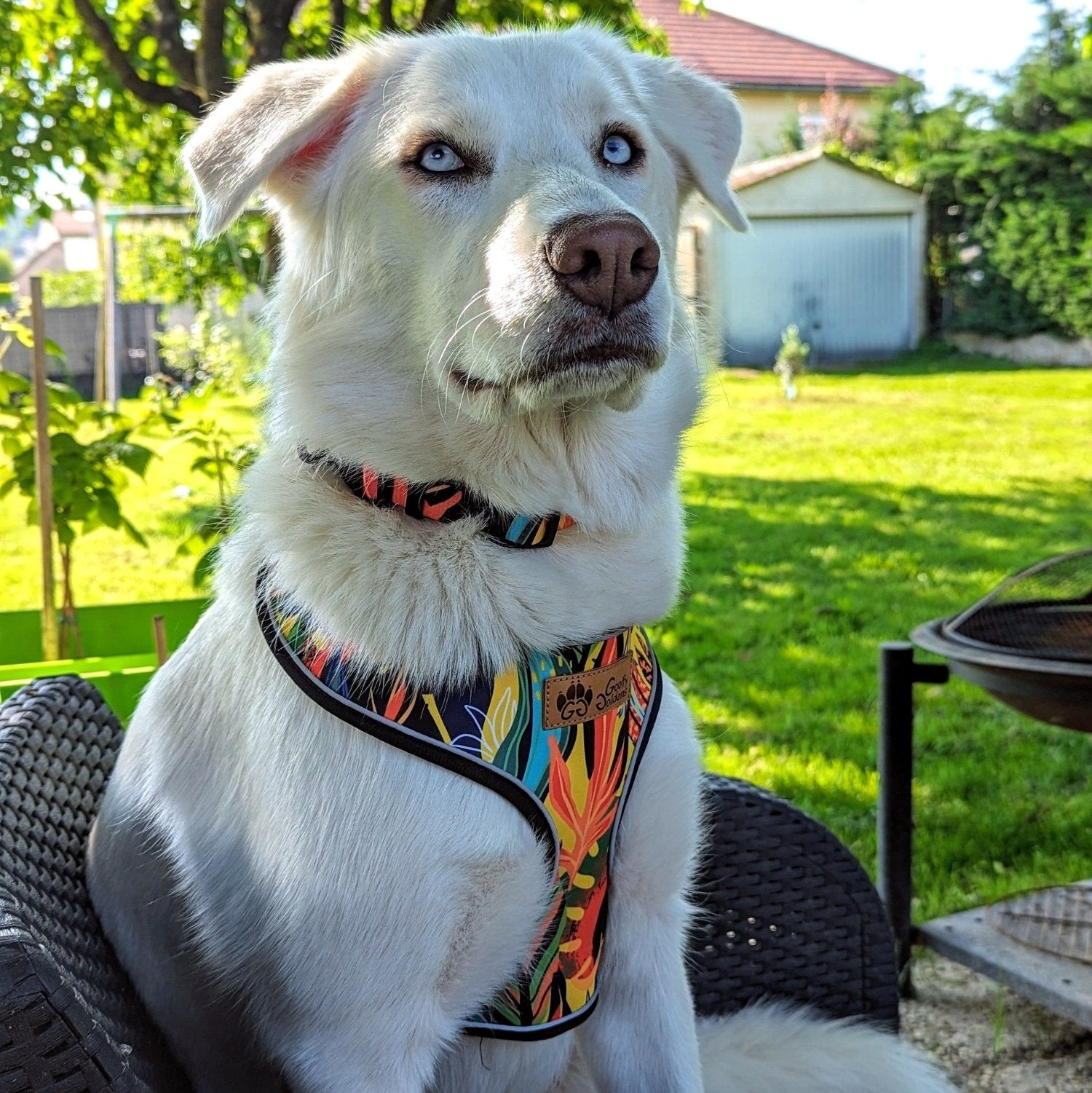 Le collier pour chien Tropical, avec ses motifs colorés tendances mélangeant des motifs tropicaux de vert, de jaune et d'orange, est le choix parfait pour les dog parents qui se soucient du confort et de la sécurité de leur compagnon à quatre pattes. Conçu en polyester de qualité, ce collier imprimé est spécialement élaboré pour résister aux aléas de la vie quotidienne de votre chien, qu'il s'agisse de promenades en plein air ou de jeux dans le jardin. Il offre une sensation douce et agréable autour du cou de votre animal, garantissant qu'il se sente à l'aise tout au long de la journée. En plus de son esthétique attrayante, ce collier s’associe parfaitement à la laisse, au harnais et aux autres accessoires de la gamme Tropical, permettant ainsi une coordination parfaite des équipements pour votre chien