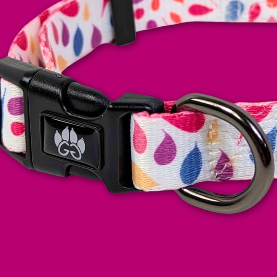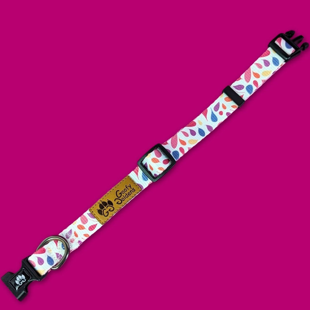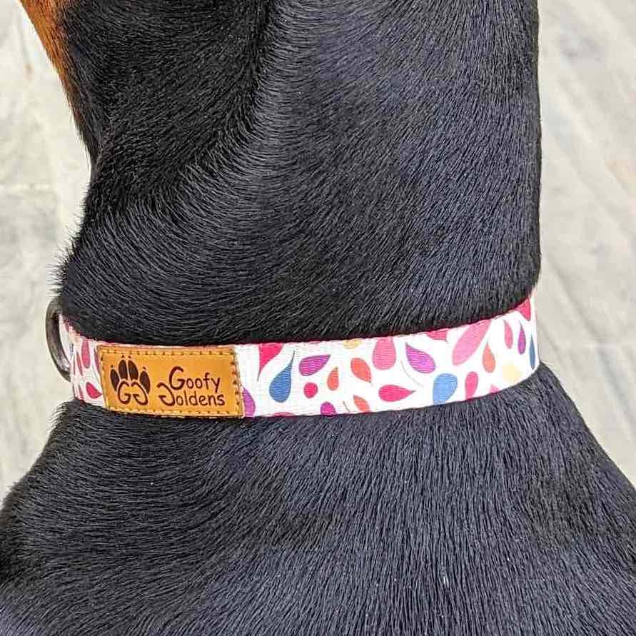 Le collier pour chien Pétales aux motifs uniques de pétales violets, jaunes et oranges en polyester résistant est parfait pour les propriétaires qui veulent à la fois le confort et la sécurité de leur compagnon. Fait en polyester de qualité, ce collier imprimé est conçu pour résister aux aventures du quotidien de votre chien, tout en restant doux et agréable à porter. En plus, il s'accorde avec la laisse , le harnais et les autres accessoires de la gamme Pétales.