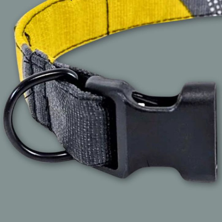 - Collier solide en nylon recouvert d'un tissu de qualité, français, composé à 78% de coton pour plus de confort.
