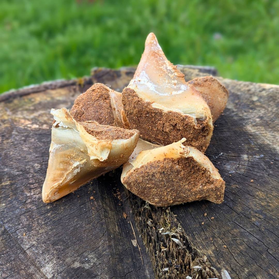 Corne de mouton : Durable, idéale pour satisfaire des gros besoin de mastication. Appétence 6/10 Difficulté mastication 10/10 |
