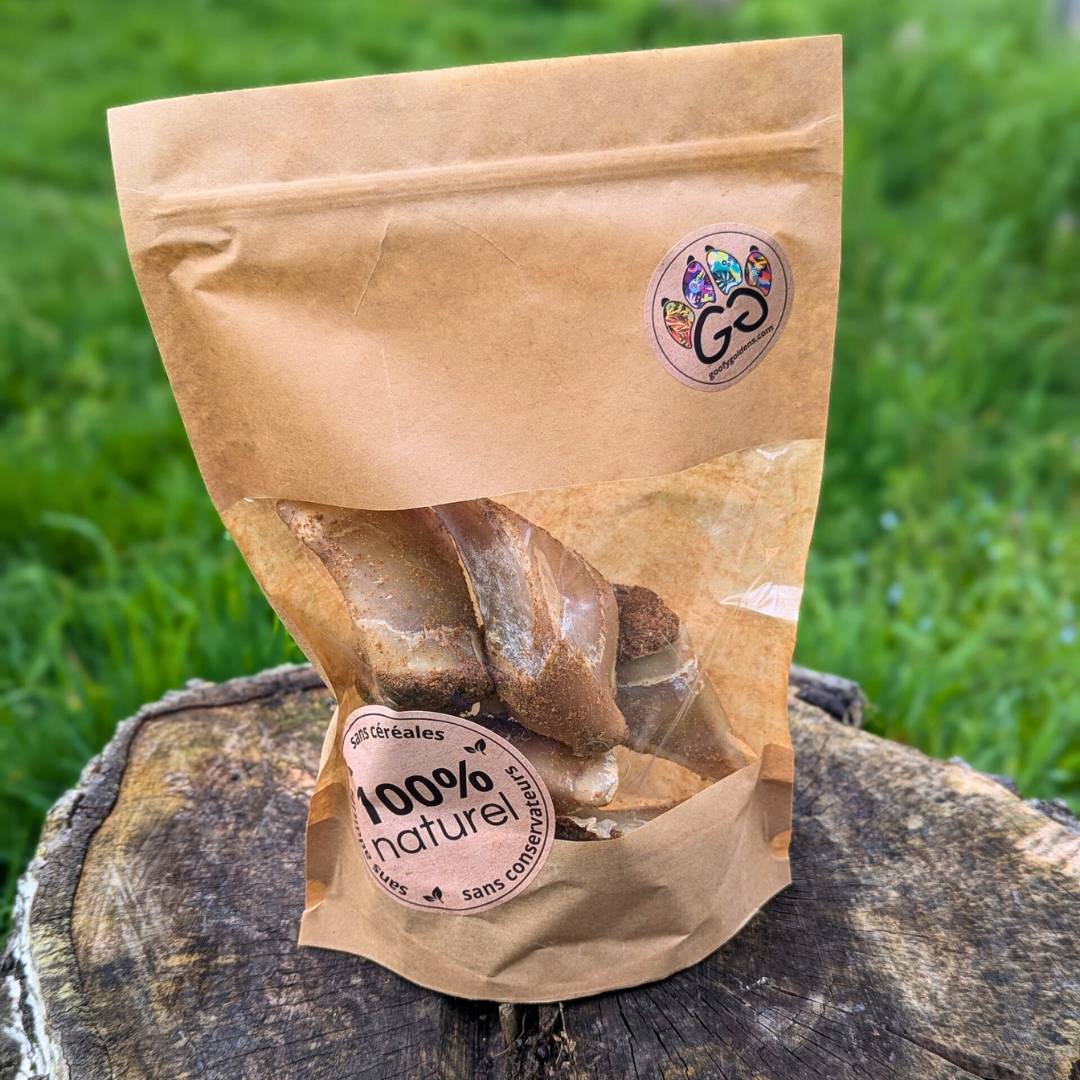 Lanière de faisan : friandise de récompense, idéale pour l'apprentissage. Appétence 9/10 Difficulté mastication 1/10 |
