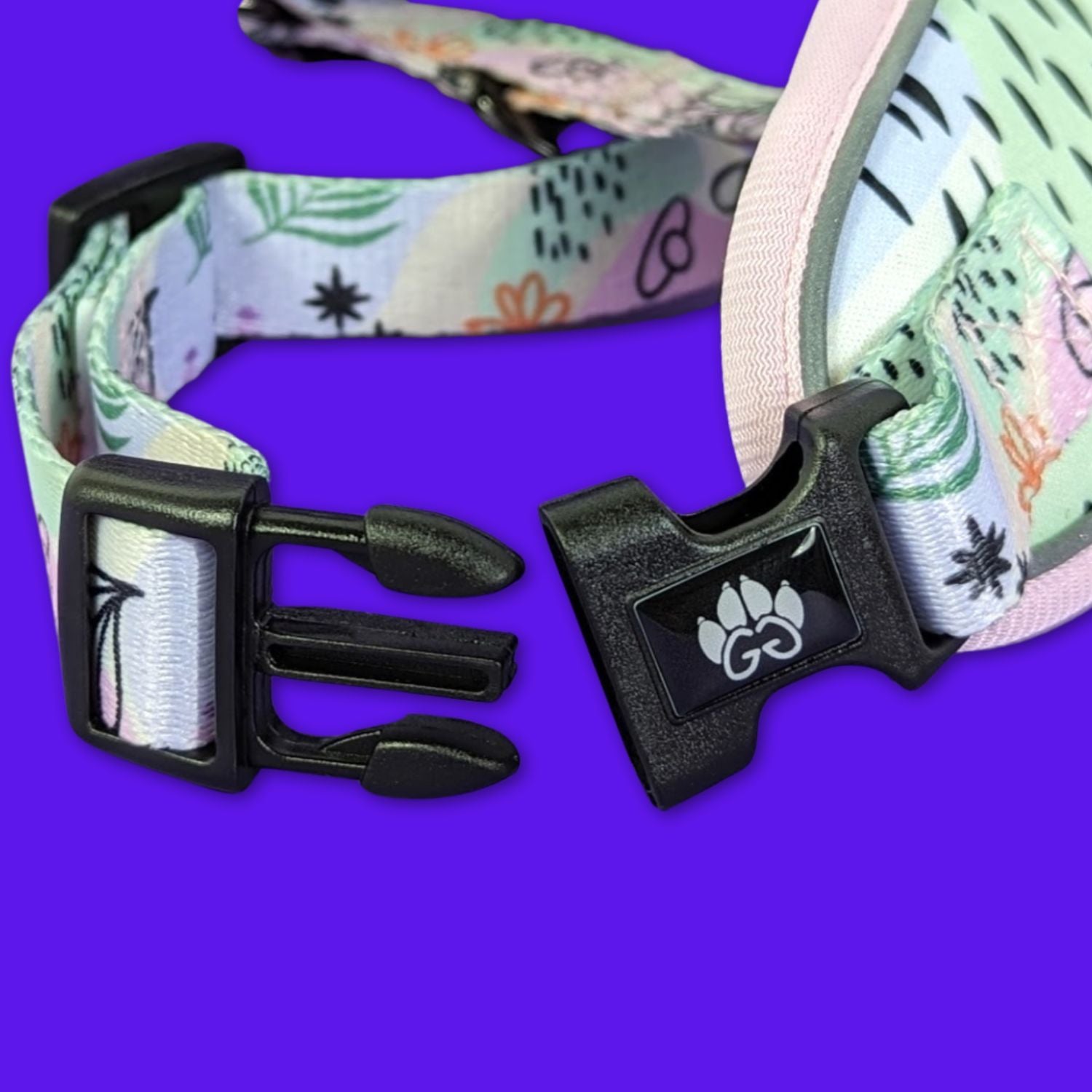 • Notre harnais en sangles de polyester est durable, confortable et respirant  grâce à son rembourrage en néoprène imprimé et mailles respirantes.