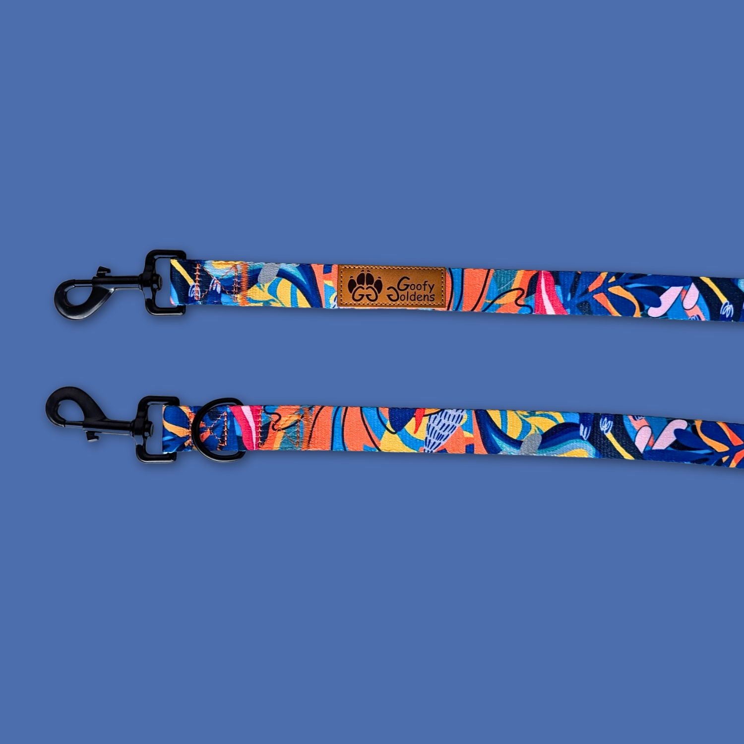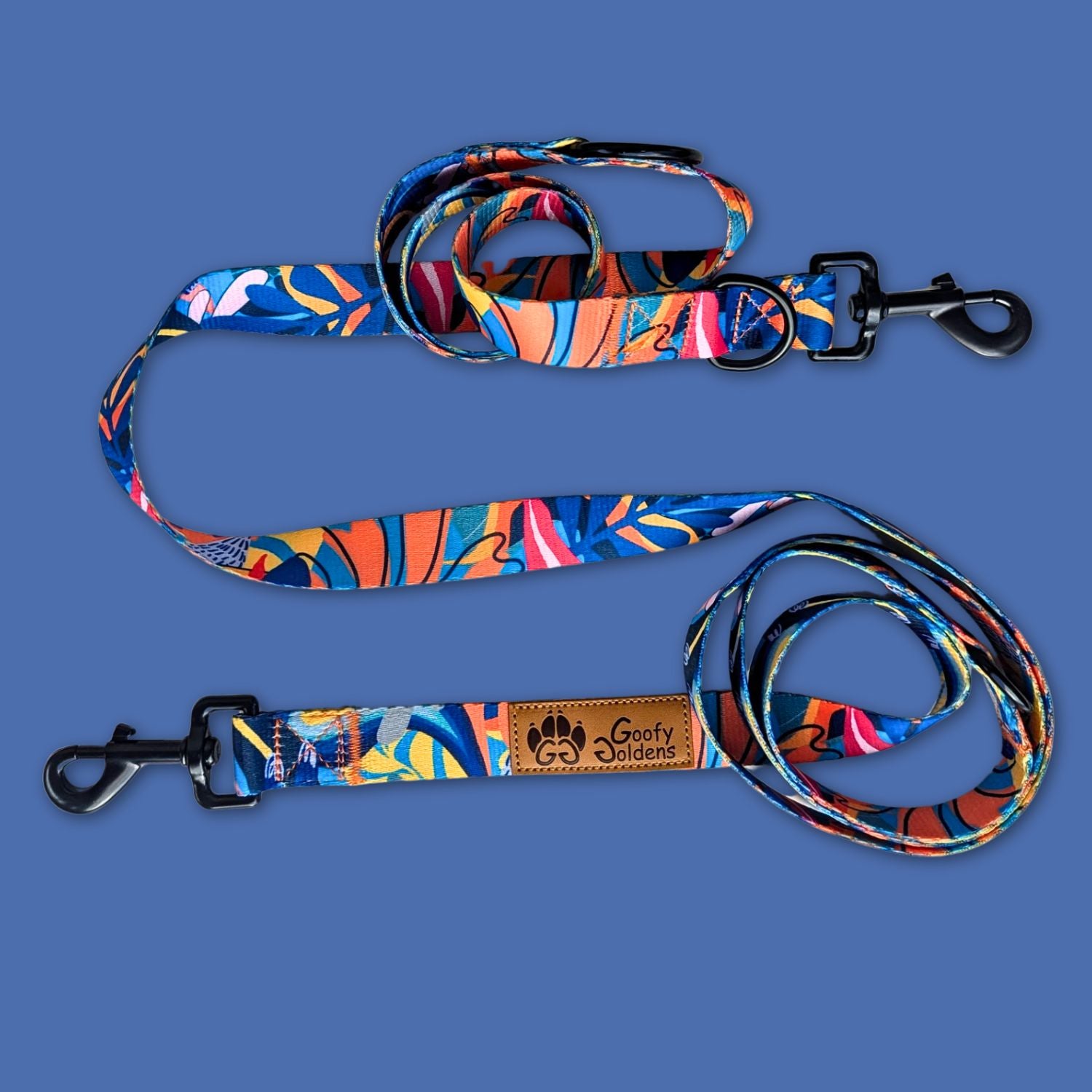 Les laisses en polyester imprimé multiposition Goofy Goldens sont conçues pour allier style, sécurité et praticité. Découvrez également nos autres modèles : Mandala, Savane, Récif, Panache et Tropical !