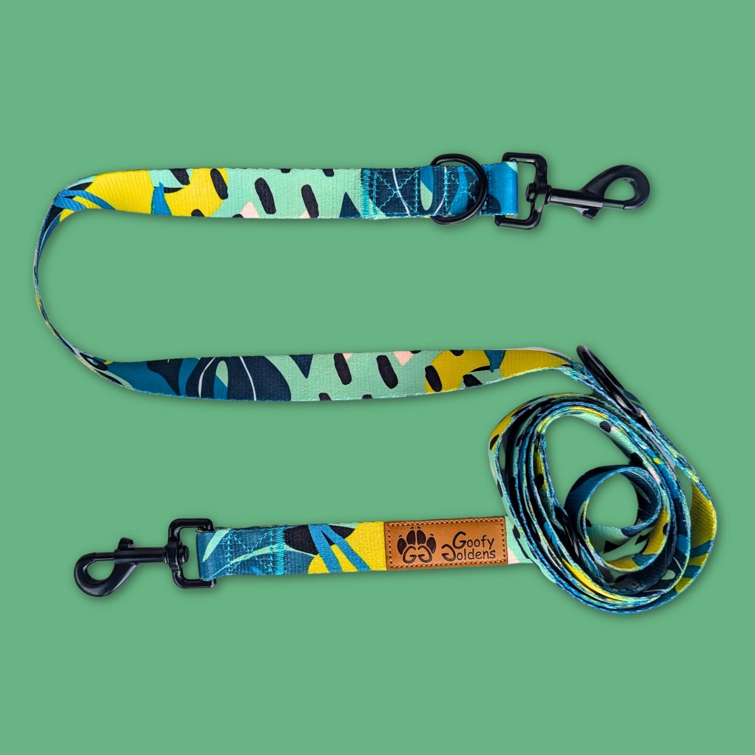 Les laisses multiposition en polyester imprimé pour chien Goofy Goldens sont conçues pour allier style, sécurité et praticité. Découvrez également nos autres modèles : Mandala, Savane, Lagon, Panache et Tropical !