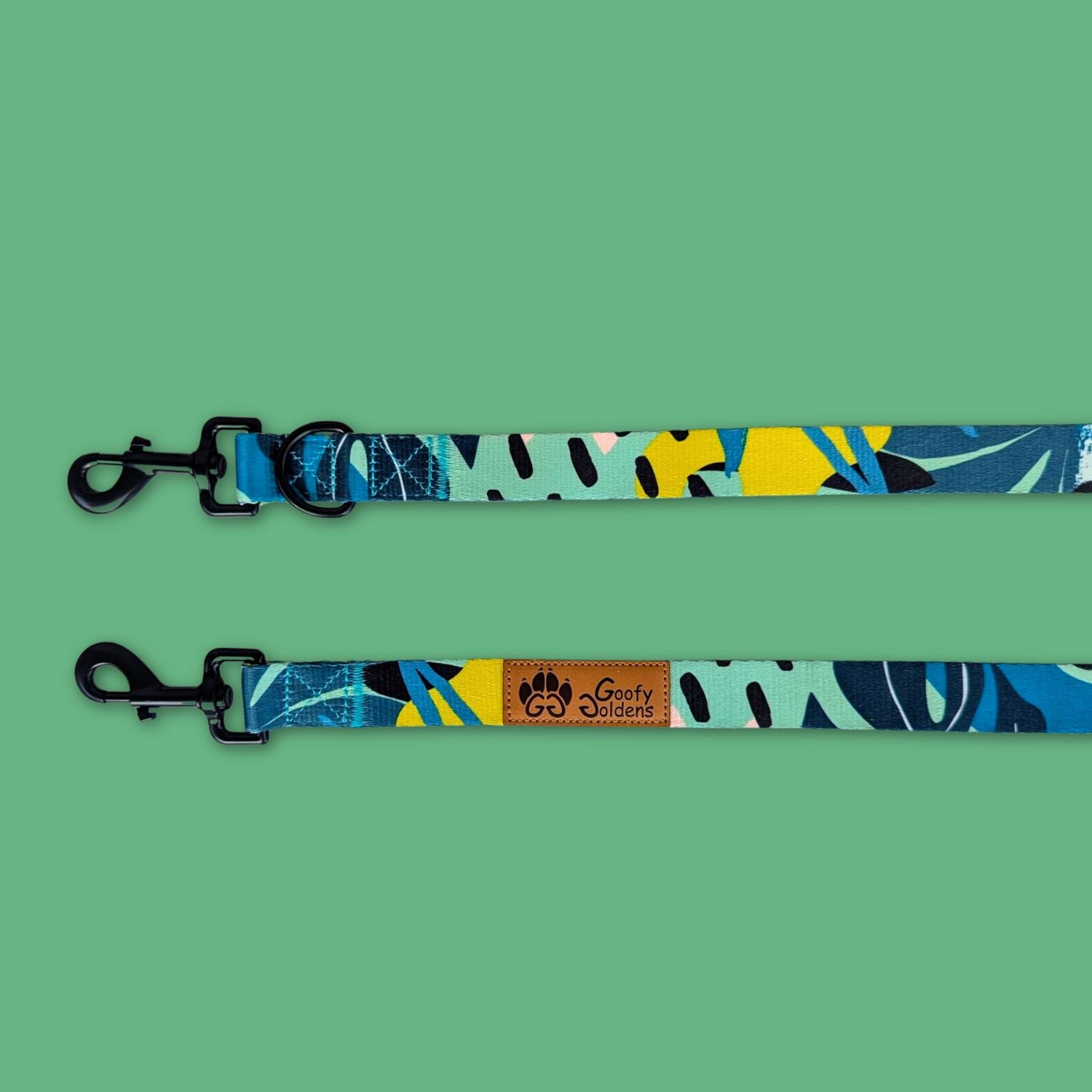 Les laisses multiposition en polyester imprimé pour chien Goofy Goldens sont conçues pour allier style, sécurité et praticité. Découvrez également nos autres modèles : Mandala, Savane, Lagon, Panache et Tropical !