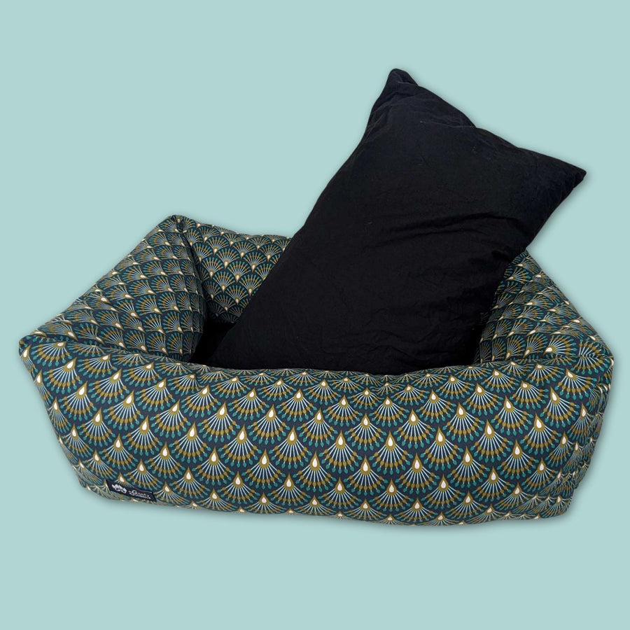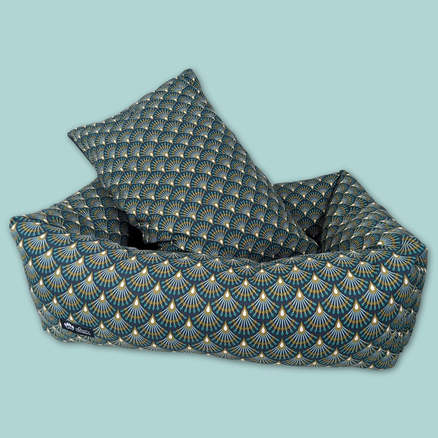 Nos paniers sont conçus avec un tissu premium, garanti sans substances nocives ni colorants allergènes. Ce textile respecte les peaux sensibles des chiens et assure un confort maximal.