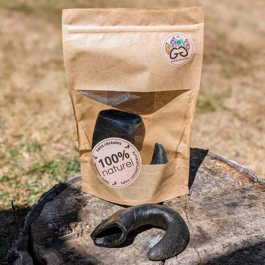 Les friandises naturelles de Goofy Goldens se démarquent par leur diversité et leur qualité. Que vous recherchiez des produits pour récompenser, occuper ou améliorer la santé de votre chien, voici quelques exemples de notre gamme. Les sabots pour chiens sont idéaux pour une mastication durable. Les cornes de buffle et cornes de mouton sont parfaites pour les gros mâchouilleurs. Pour une alternative riche en minéraux, optez pour les bois d'olivier ou les bois de cerf fendus. Le fromage de Yak constitue une friandise saine et savoureuse. En outre, nous proposons des lanières de viande, des pattes de poulet, des oreilles de bœuf, ainsi que des poumons de bœuf et des oreilles de porc, riches en protéines et faibles en graisses.