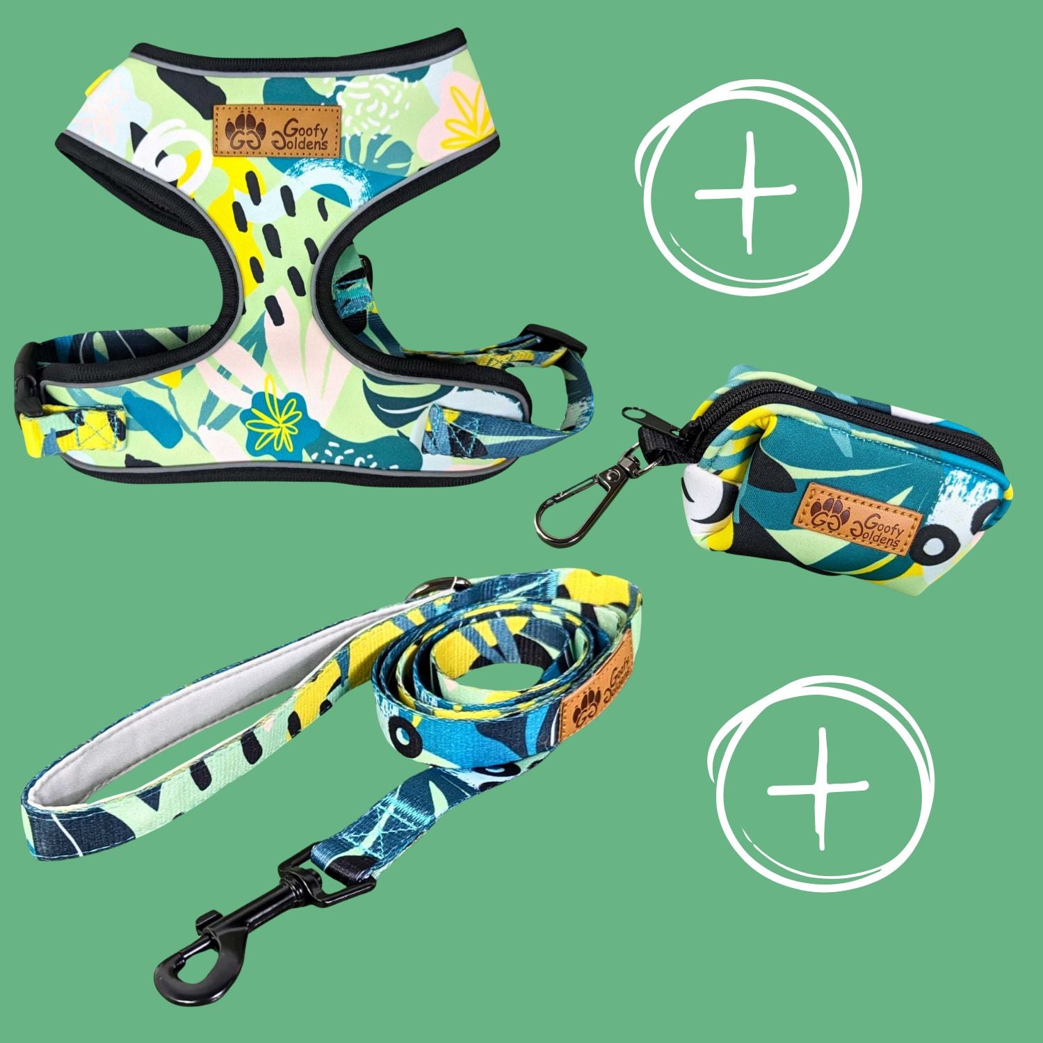 A dog walking kit with harness to discover the colorful and dynamic universe of the Reef collection.