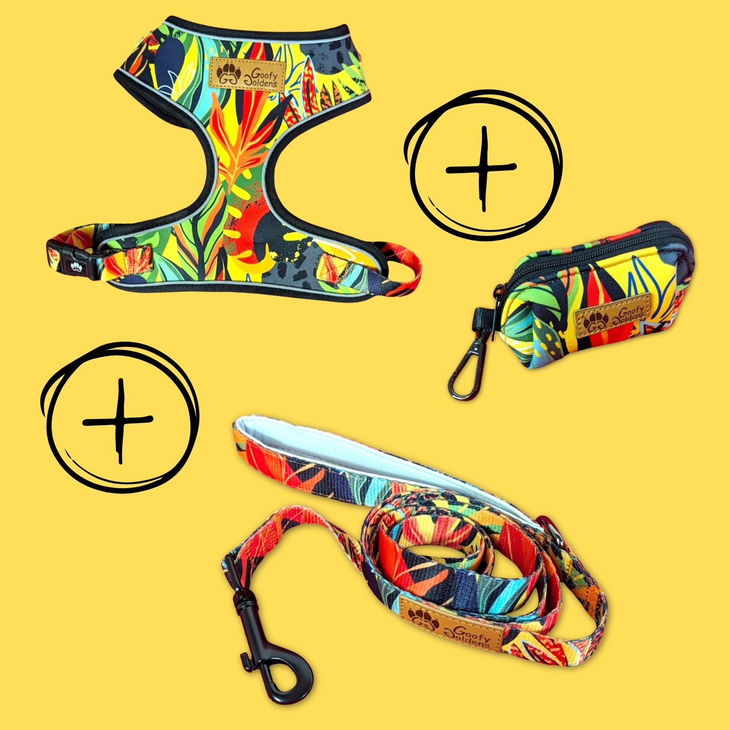 A dog walking kit with harness to discover the colorful and exotic world of our Tropical collection.