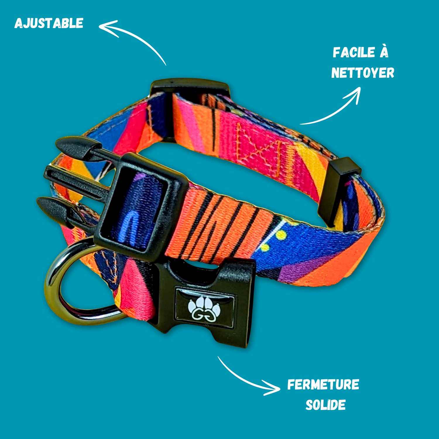 Available in different patterns, each one more original and trendy than the last. Discover for example the Récif dog collar, the Tropical dog collar, the Deep Agua dog collar or the Cactus dog collar without forgetting the Pastel dog collar.