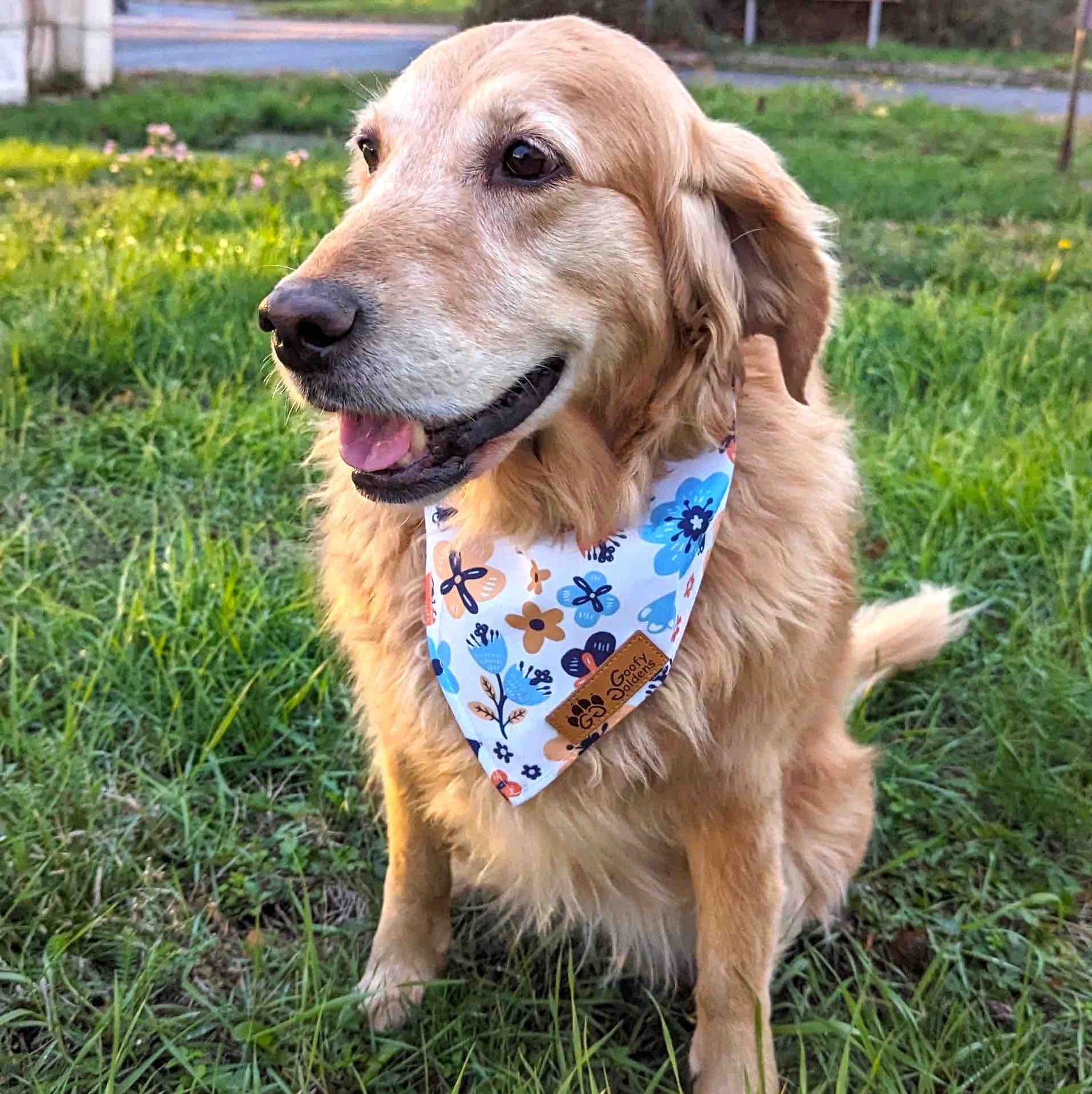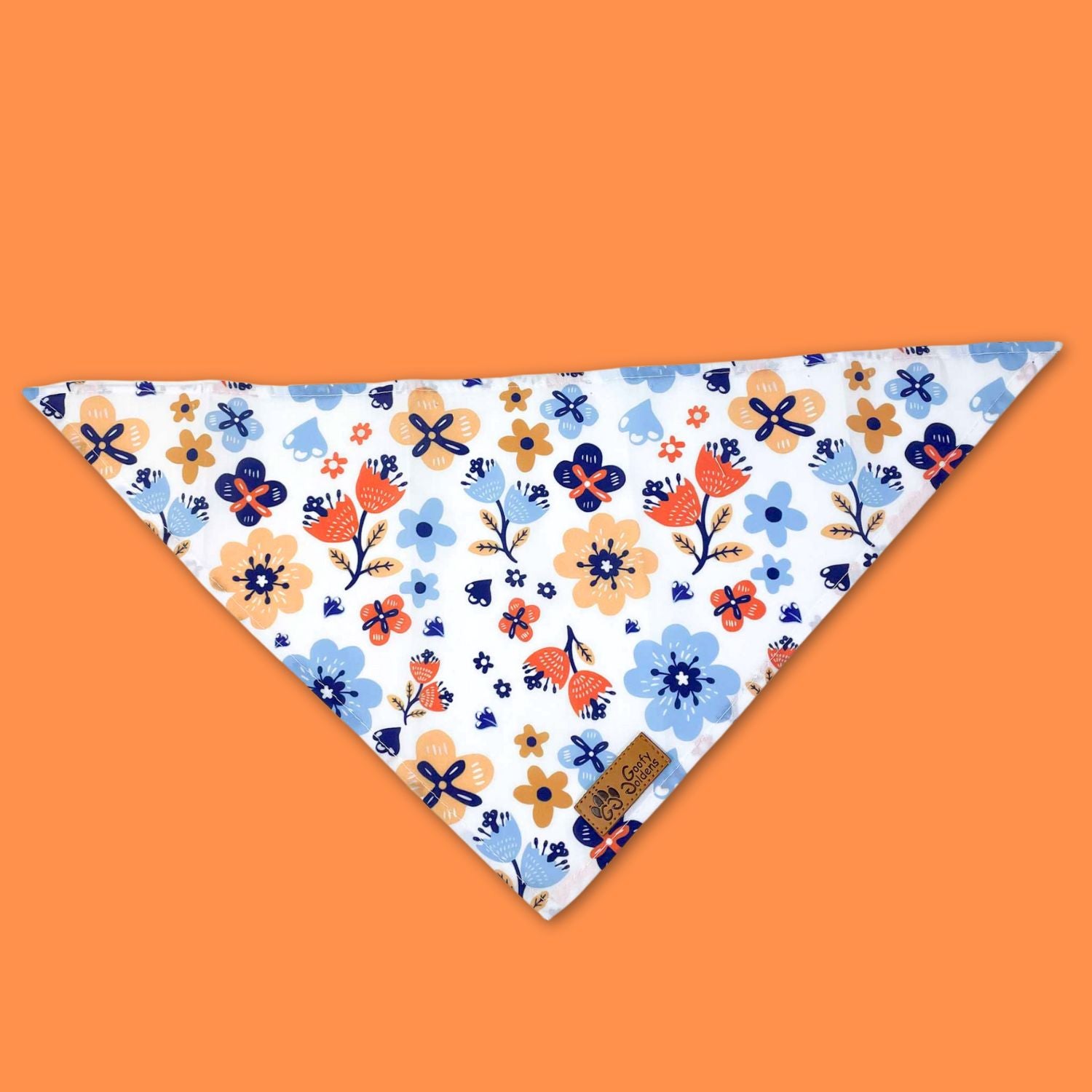 Looking for a unique bandana to add character to your dog? Our Spring range bandana with its blue and orange floral patterns adds a sunny, springy touch to every walk or special event.