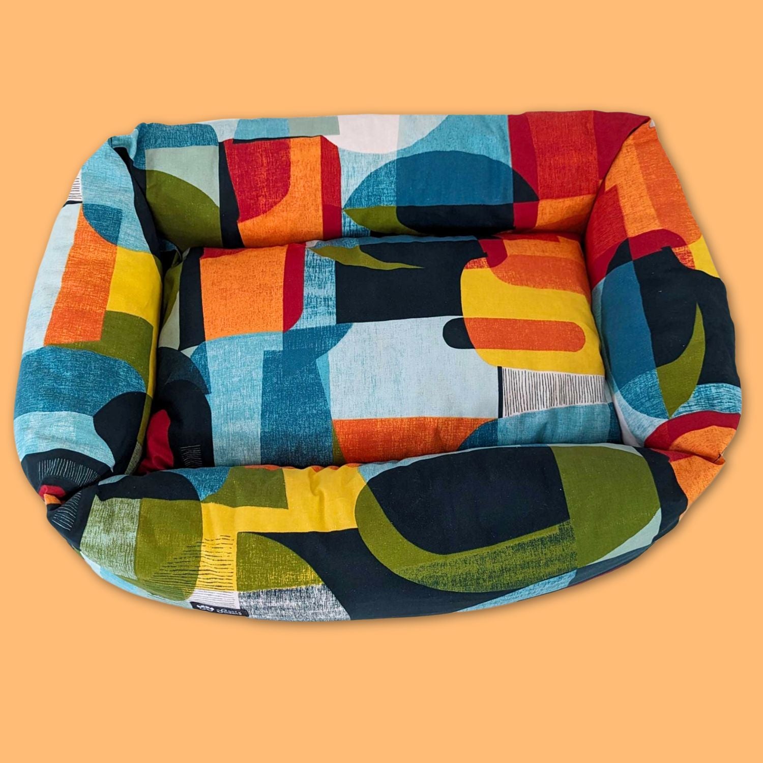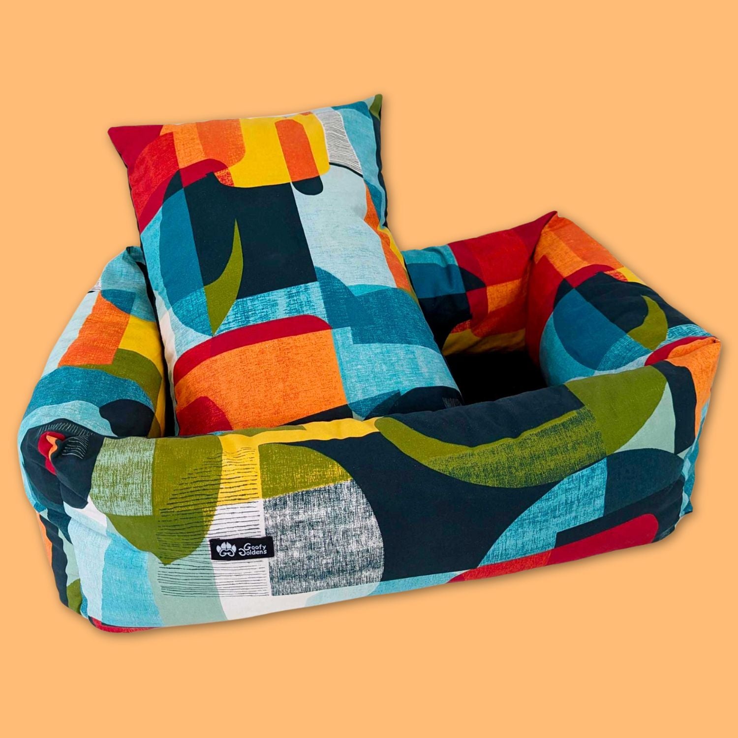 Summer range dog basket in bright and colorful colors summer orange, blue, green and yellow .