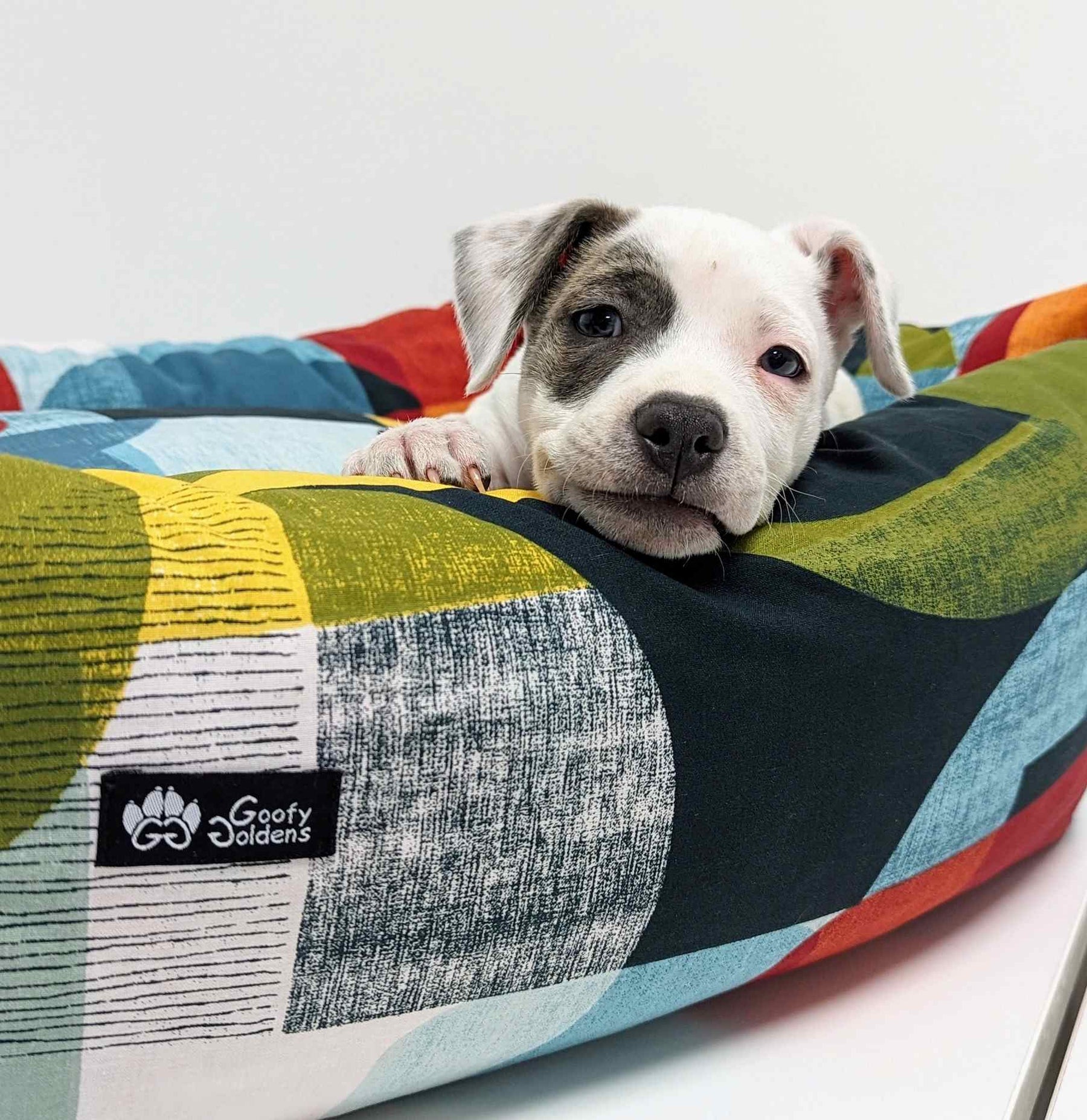 - The Goofy Goldens® Dog Bed with Rim is a super comfortable product where the dog feels contained, where he can rest his head.