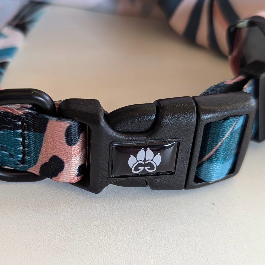 The Savannah Dog Collar and Bandana in durable polyester is an ideal choice for pet owners concerned about the comfort and safety of their companion. Made from premium polyester, this printed collar is designed to withstand the rigors of your dog's daily life, while providing a soft and comfortable feel around their neck. It matches the lead , harness or accessories from the same Savannah range.