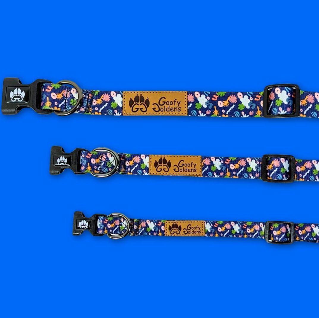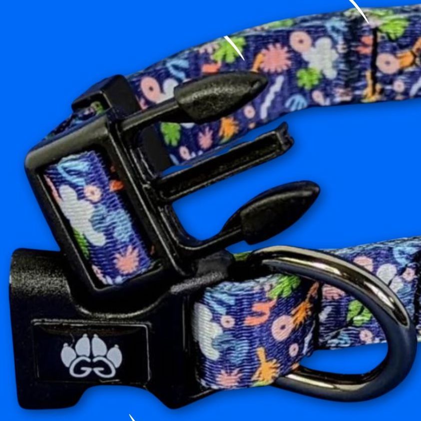 The Deep Agua dog collar with its different seabed patterns and colors on a navy blue background made of durable polyester is an ideal choice for pet owners concerned about the comfort and safety of their companion. Made from quality polyester, this printed collar is designed to withstand the rigors of your dog's daily life, while providing a soft and comfortable feeling around his neck.