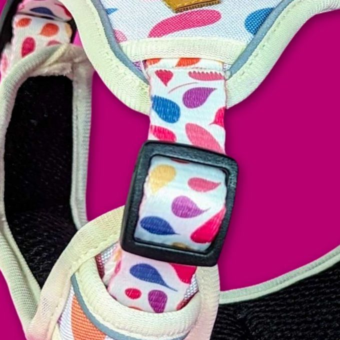 - Quality material with its printed oxford material and lined with breathable air mesh. These harnesses are not only stylish but very comfortable .