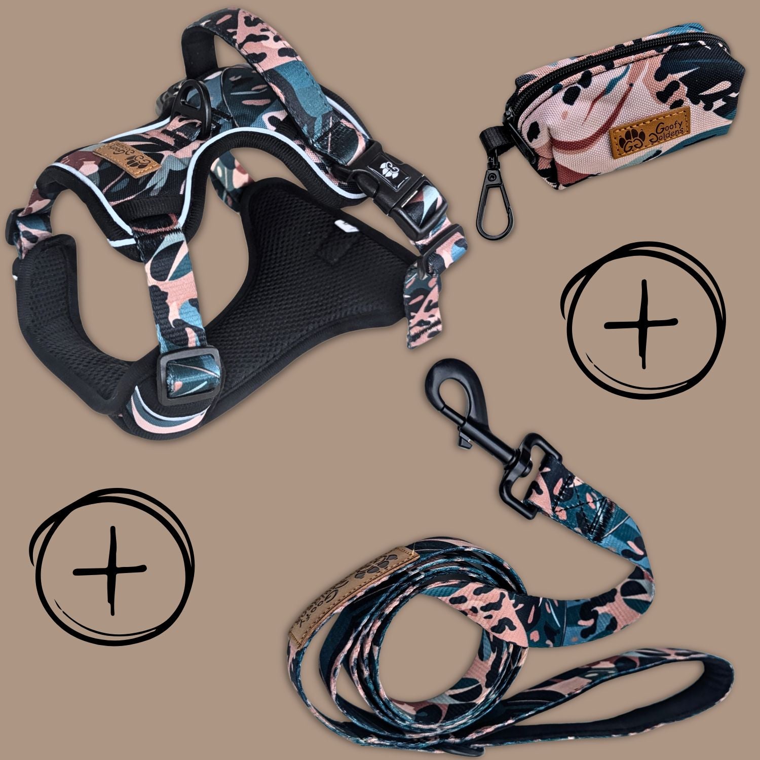 With this collection, your canine companion will be adorned with savannah patterns Mixes of brown, green, and beige with foliage and leopard-spot patterns. Get ready to turn every walk into a true safari!
