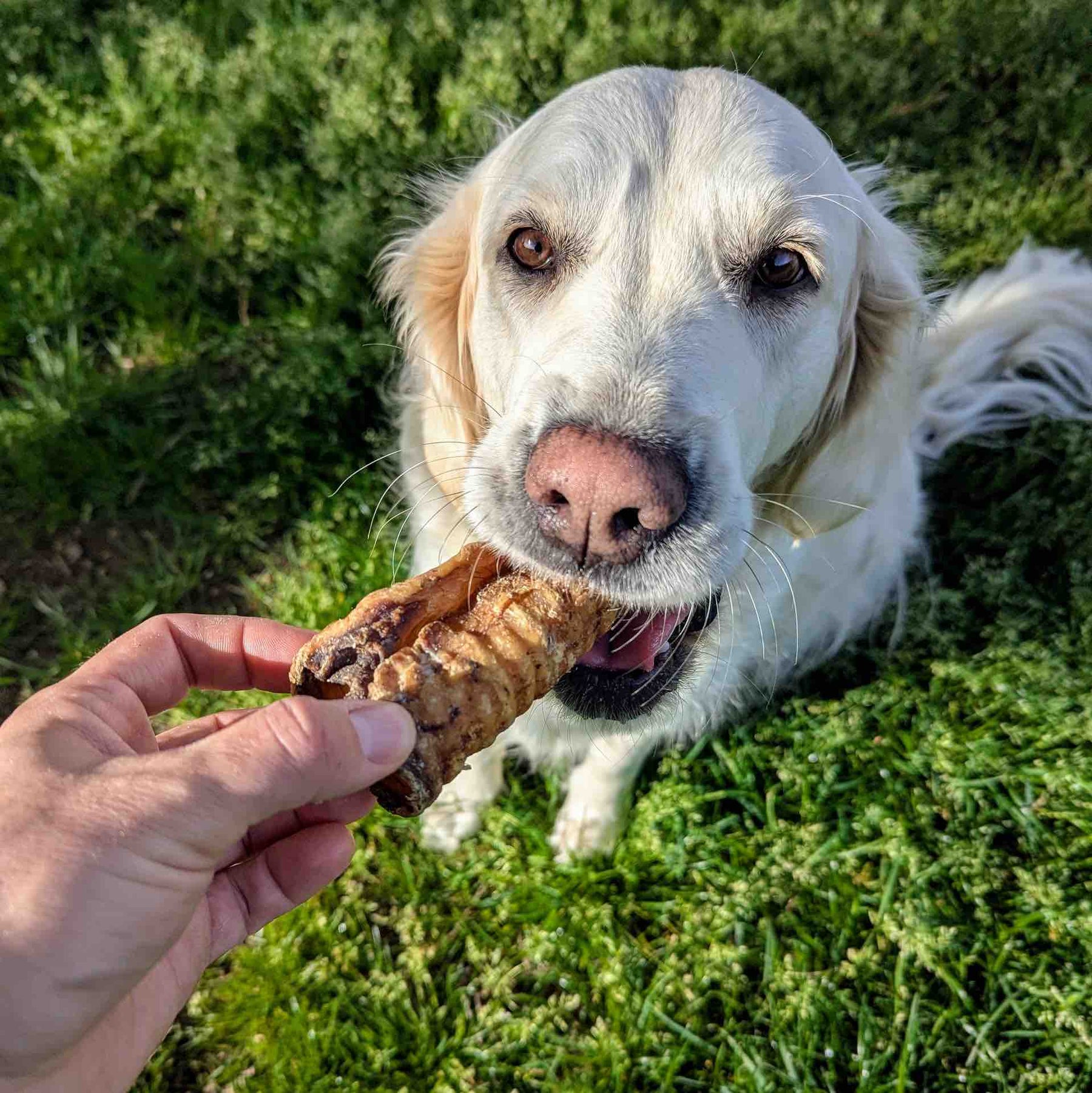 At Goofy Goldens, we believe in simple, pure ingredients. Our beef tracheas are 100% natural , with no additives or preservatives. A perfect alternative to processed treats!