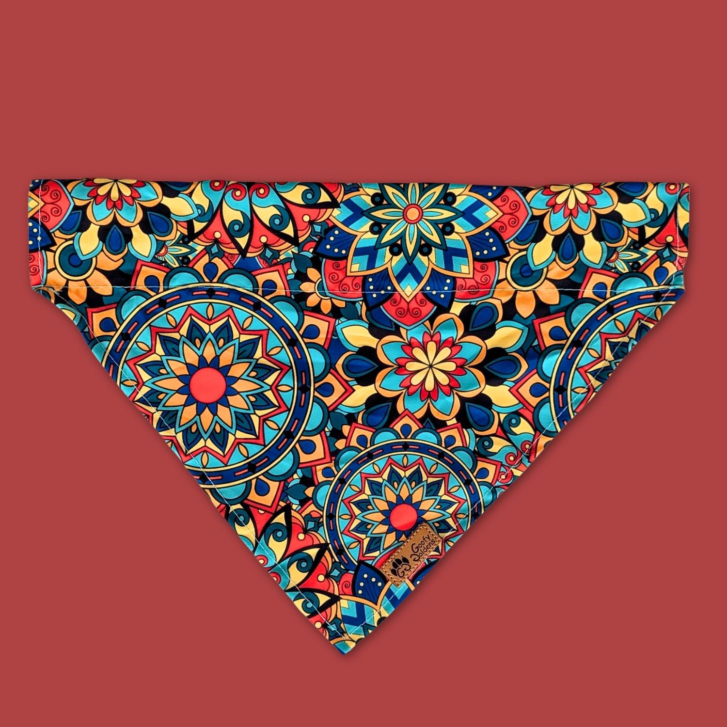 Are you looking for an original bandana to give your dog some character? Our bandana from the Mandala range in tones Greens, reds, yellows and blues representing superb mandalas add a trendy and elegant touch to every walk or special event.