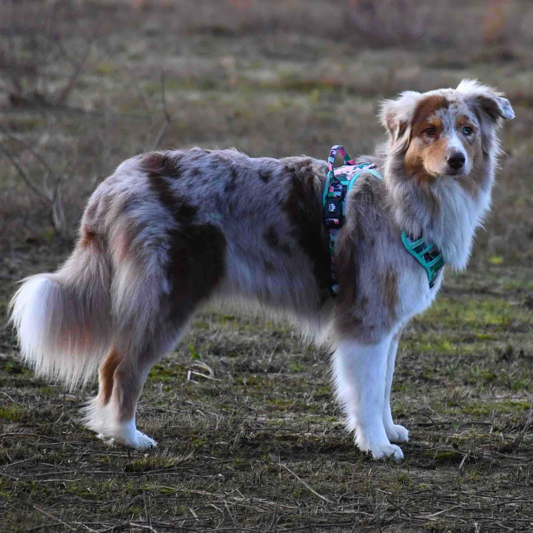 A heart of gold, a wagging tail, and a smile that would make anyone melt! If you're lucky, she'll greet you with that famous Australian Shepherd grin and a sway that would make even the biggest stars jealous. Faithful and loyal... until someone pulls out a piece of food. At that point, goodbye to loyalty! She'd even sell her owner for a treat.
